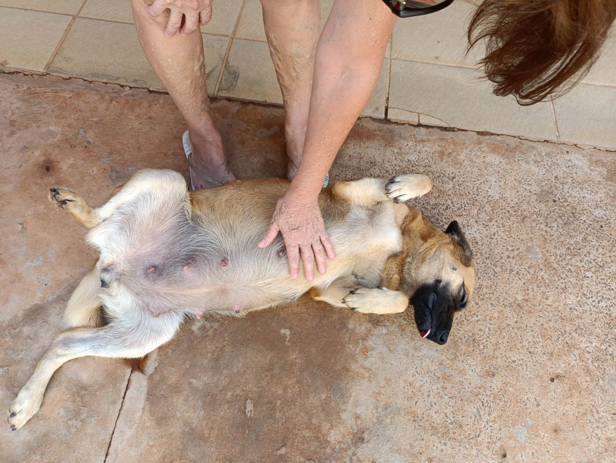 Está abandonada a 1 mês, e acabou dando cria a 6 filhotes