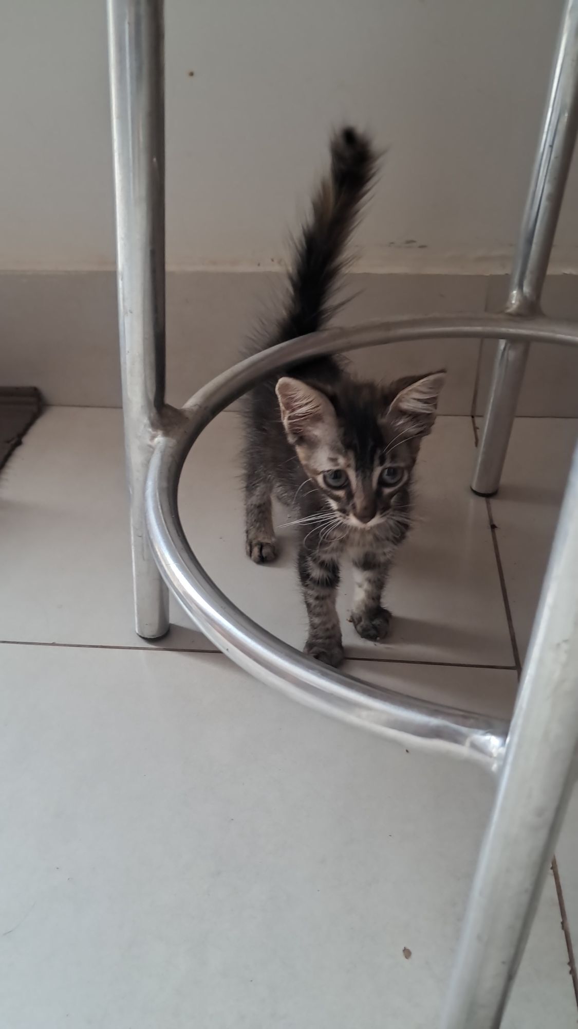 Estava caminhando no bosque da paz, no bairro caranda bosque, e ele estava sozinho, abandonado e miando muito, levei para casa e dei ração e água, porém ja tenho 2 gatos, não posso ficar com ele.