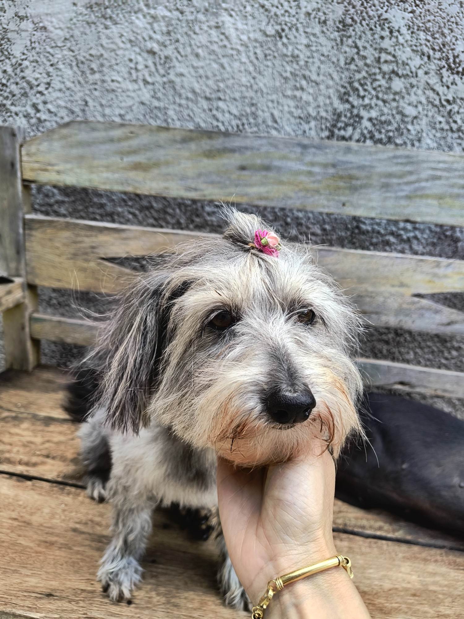 Conheça a Molly, uma adorável cadela SRD de 6 anos. Dócil e sociável, perfeita para famílias com crianças e outros cães. Adoção responsável!