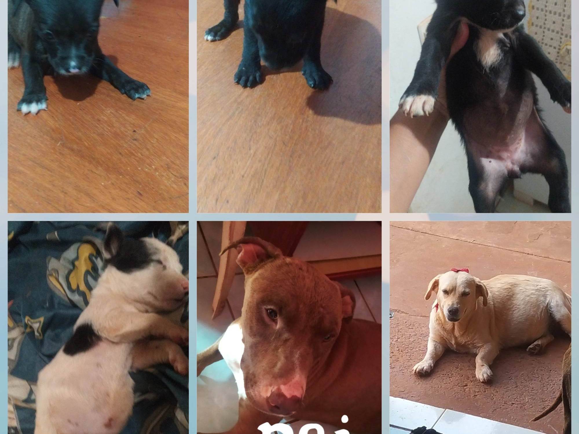 Estou doando esses filhotes a mãe e vira lata e o pai e Pit Buul tão cm 45 dias