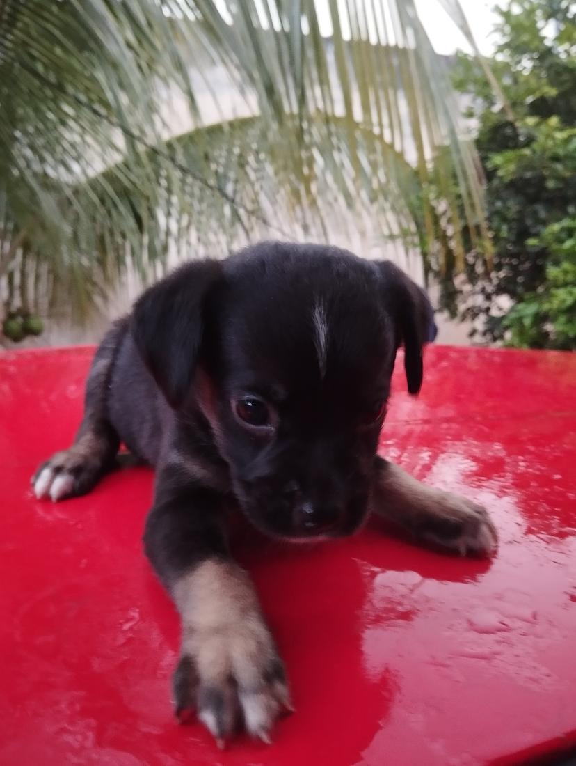 Linda cachorrinha fêmea manchinha na testa dócil preta e patinhas caramelo já come ração tomou a primeira dose do vermifugo se combinarmos levo na sua casa.