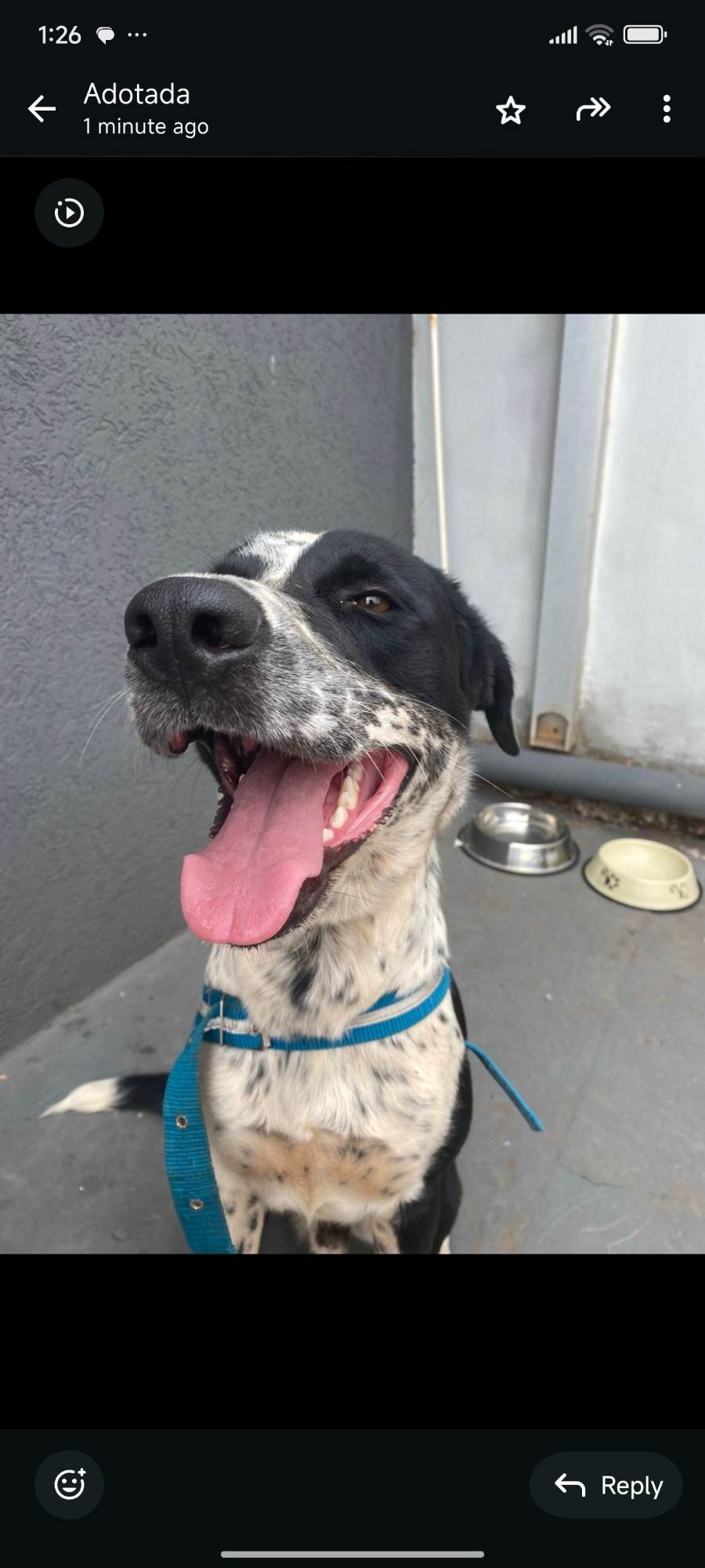 Ele é preto com duas marcas pretas no rosto e pintas pretas pelo corpo, para branca com pintas, barriga também é branca, HÁ RECOMPENSA E É NEGOCIÁVEL