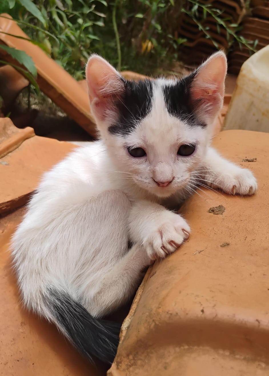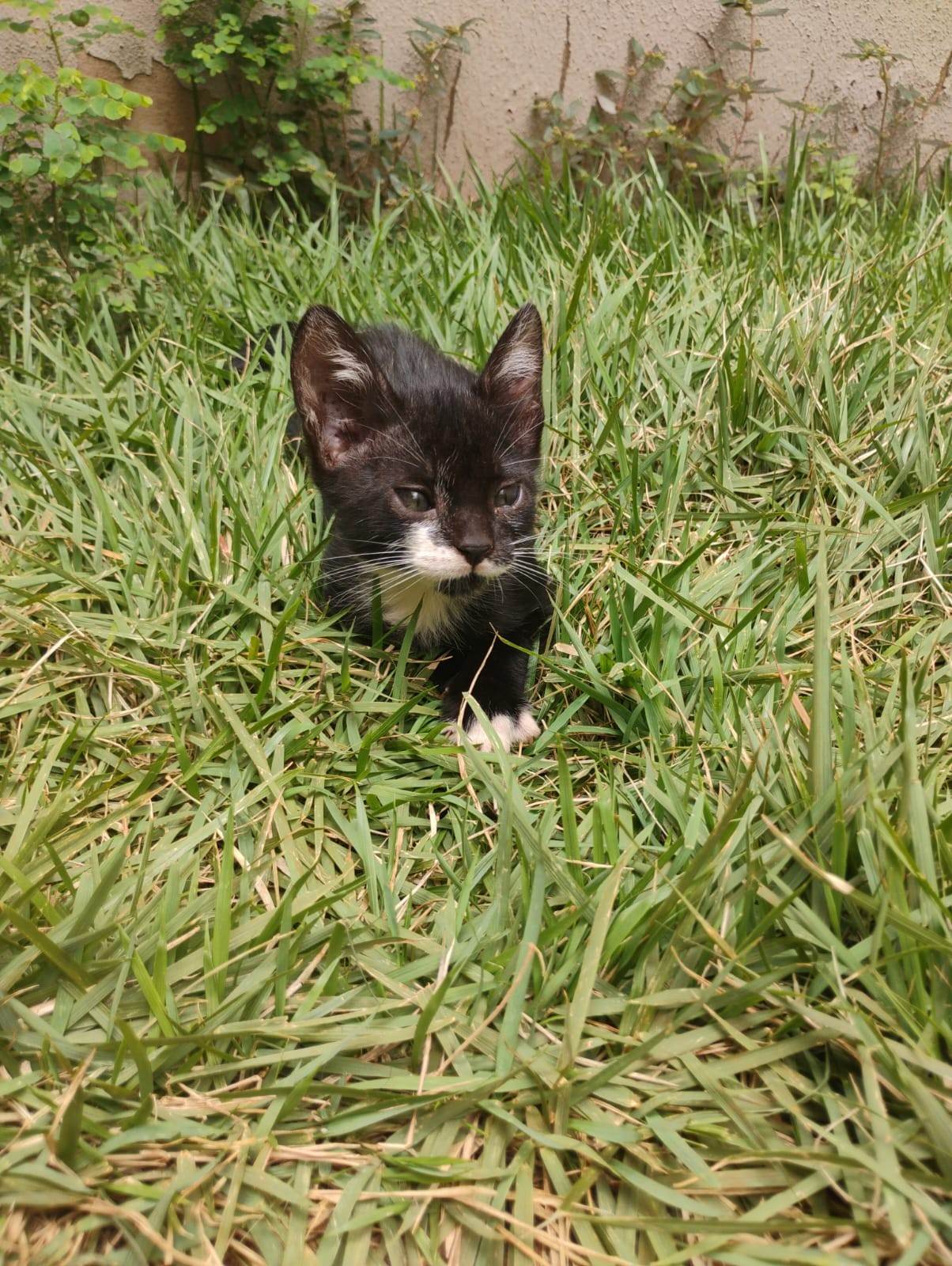 Gato pequeno, Abaixo de 2 meses, SRD-ViraLata, cor Branca/Preta.
