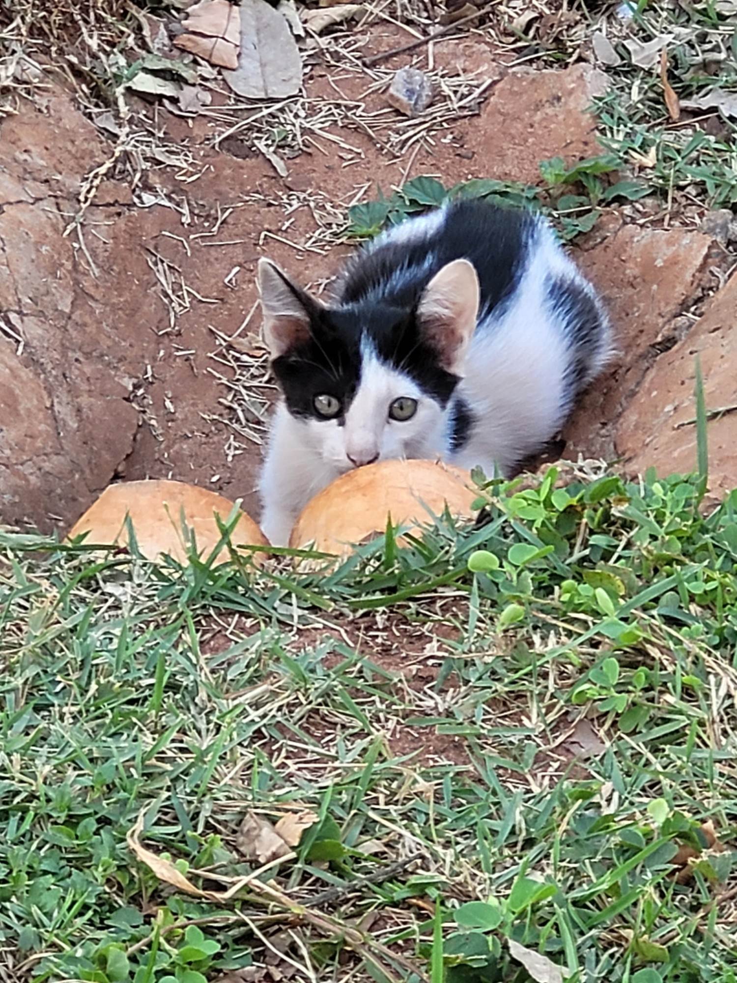 Gato pequeno, 2 a 6 meses, SRD-ViraLata, cor Branca/Preta.
