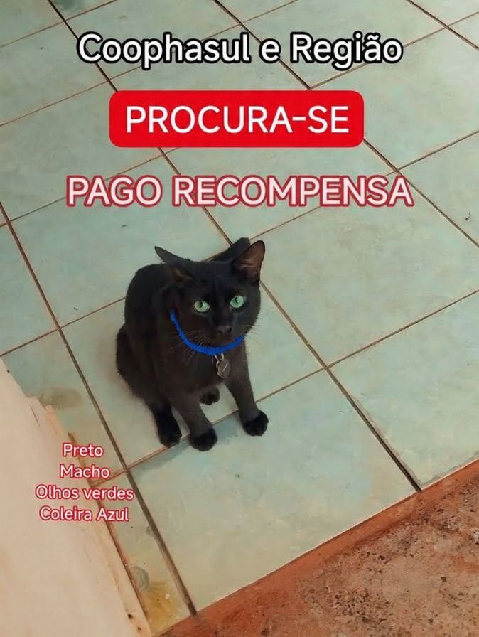 Sumiu a 4 dias pela região do mercado Camila Coophasul, caso você tenha visto ele ou alguém esteja com ele por favor entra em contato comigo estou desesperada.